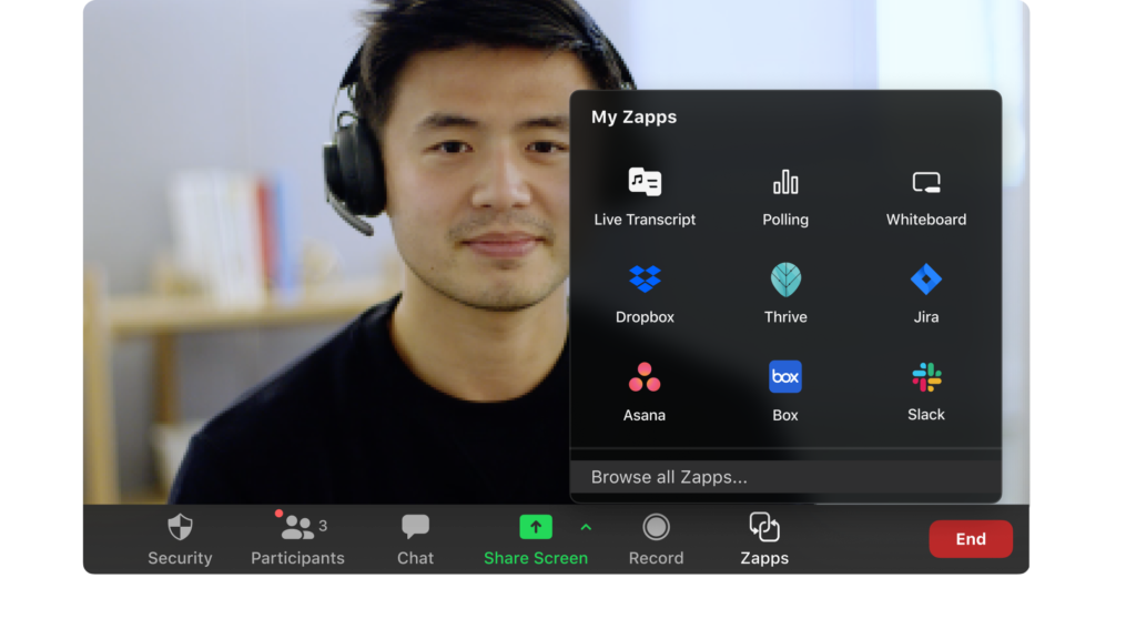 Using Zoom Apps is easy – you can integrate them directly from within your Zoom account. Once you’ve set up the integration, you will be able to open an app within a Zoom meeting from the “Zoom Apps” option at the bottom of the Zoom screen.